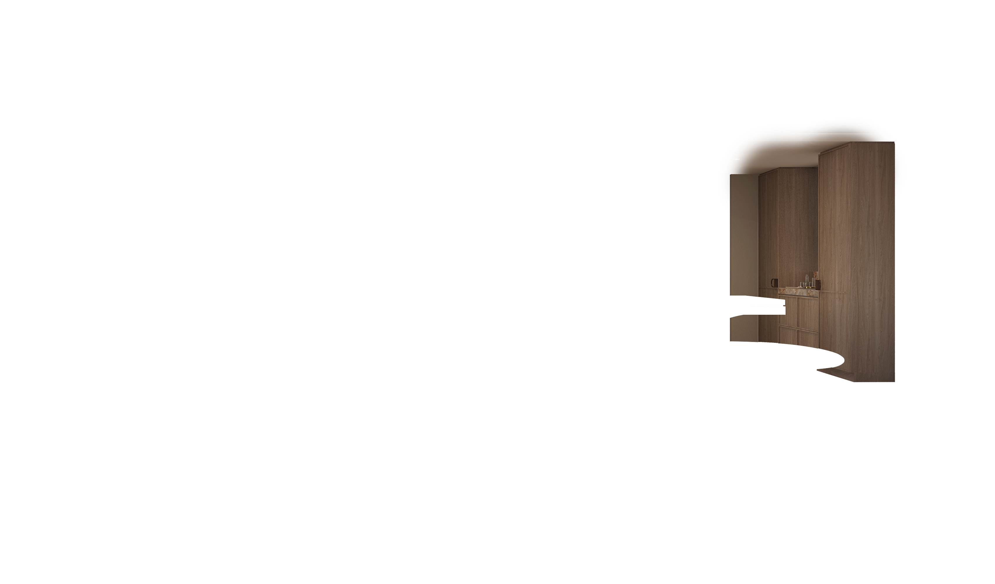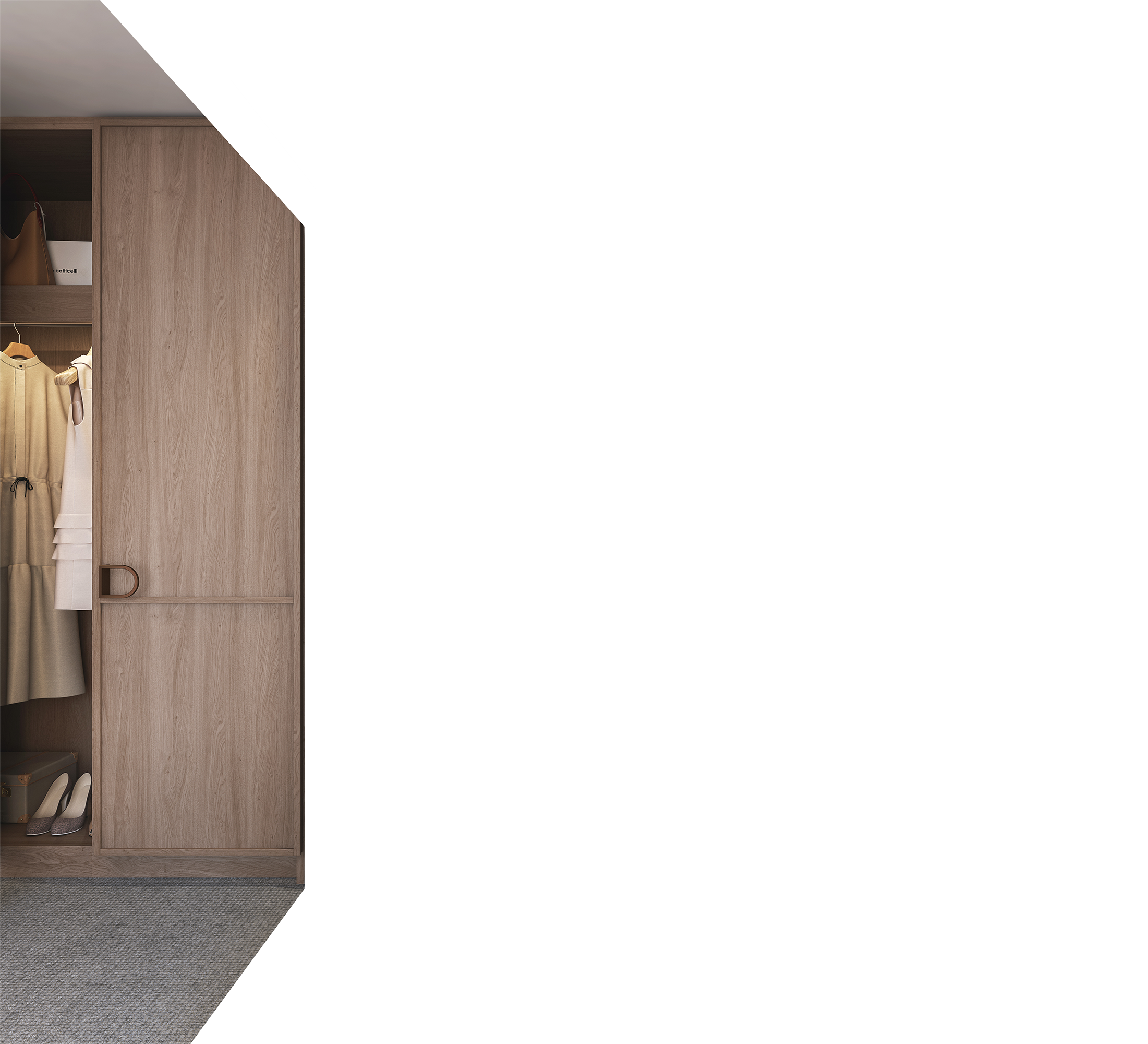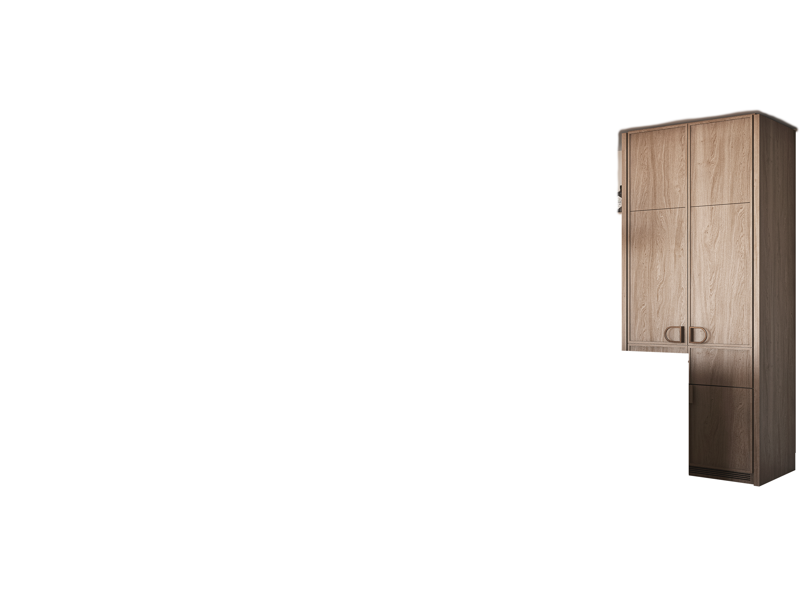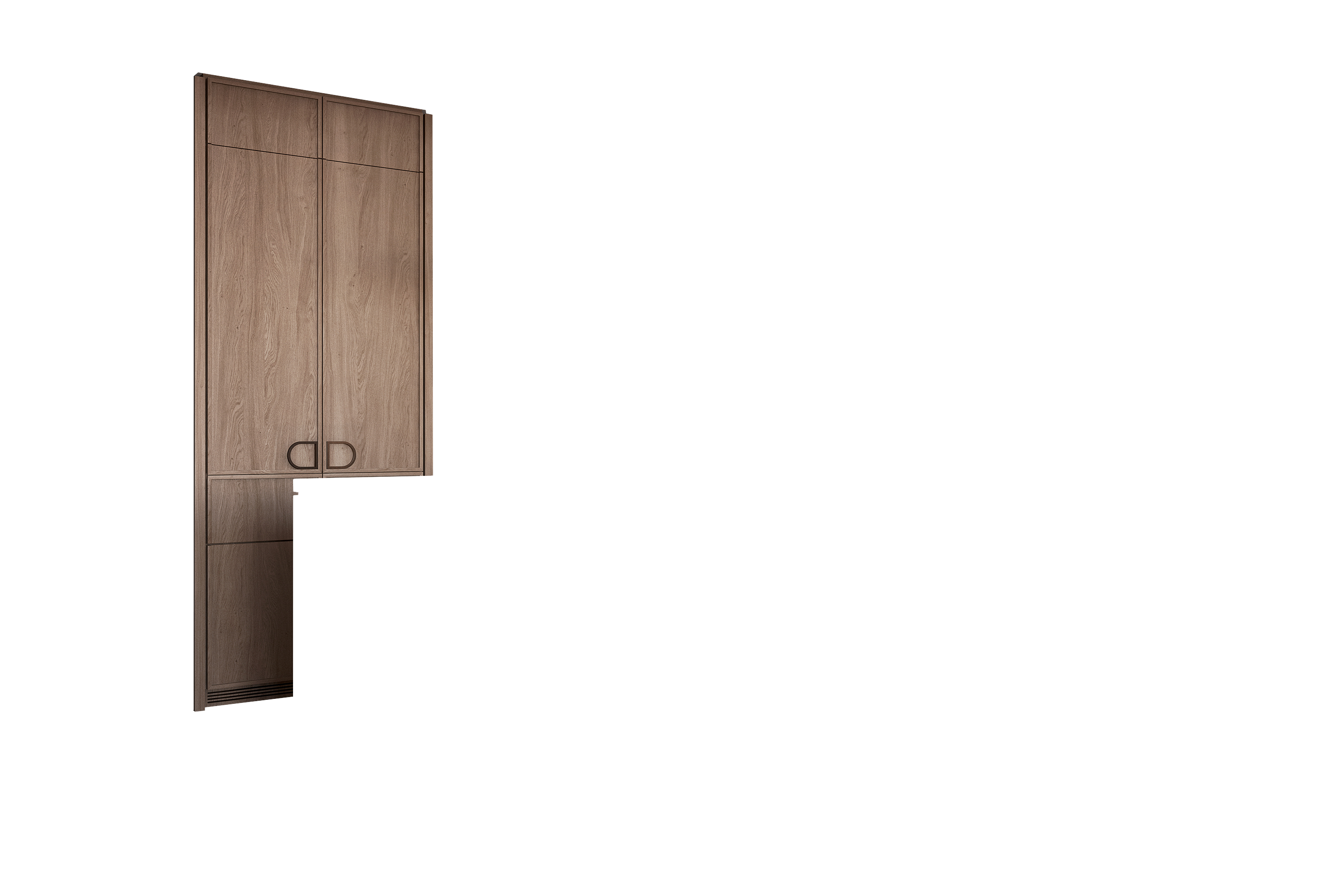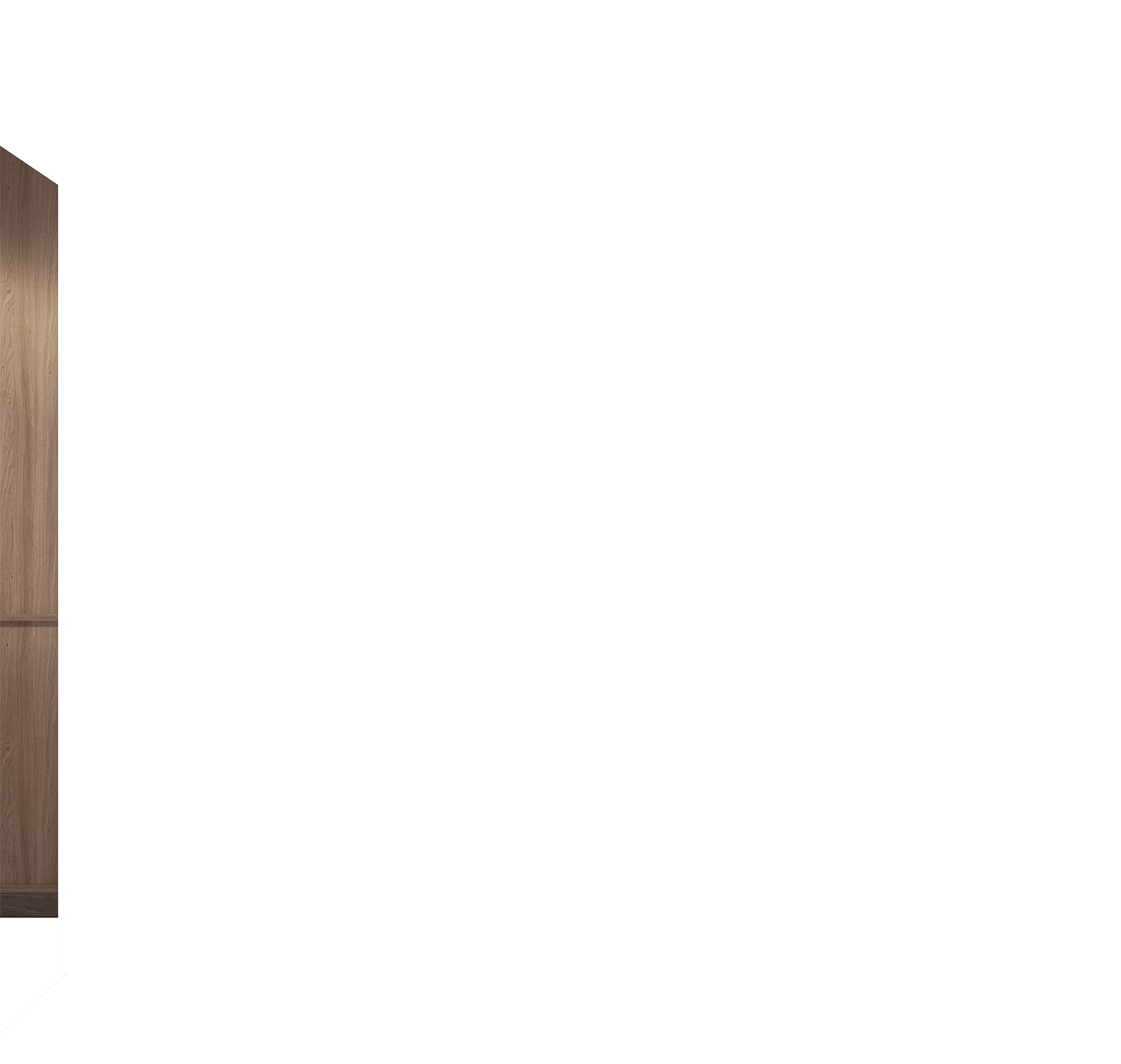 Cupboard with timberlook laminate, shaker profile and custom handle and desk