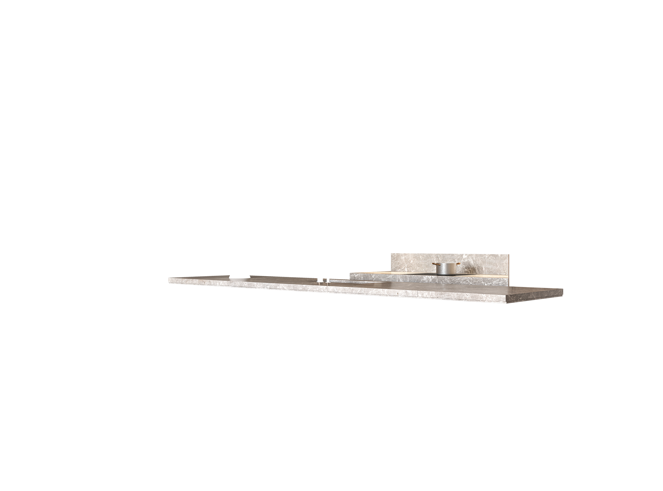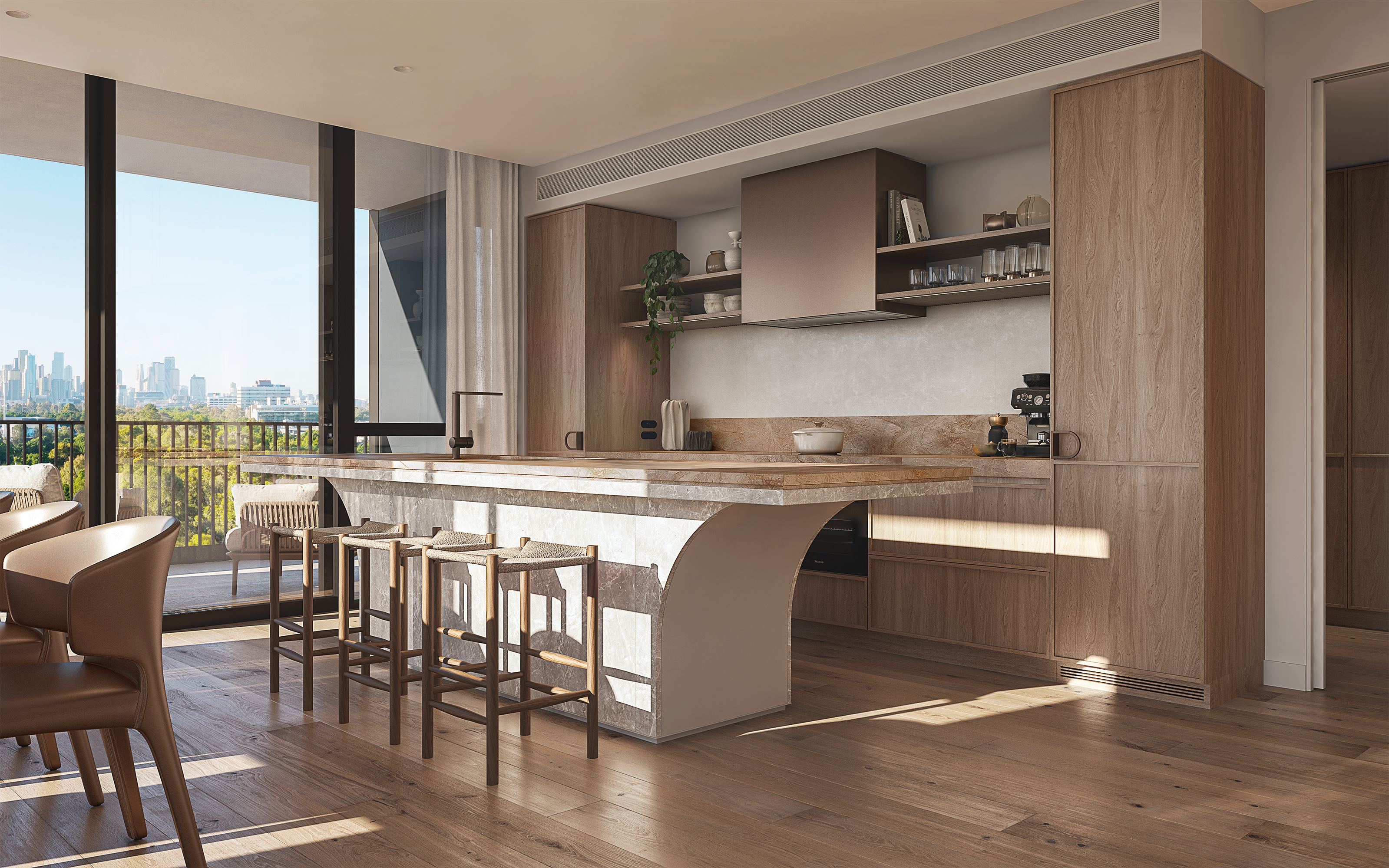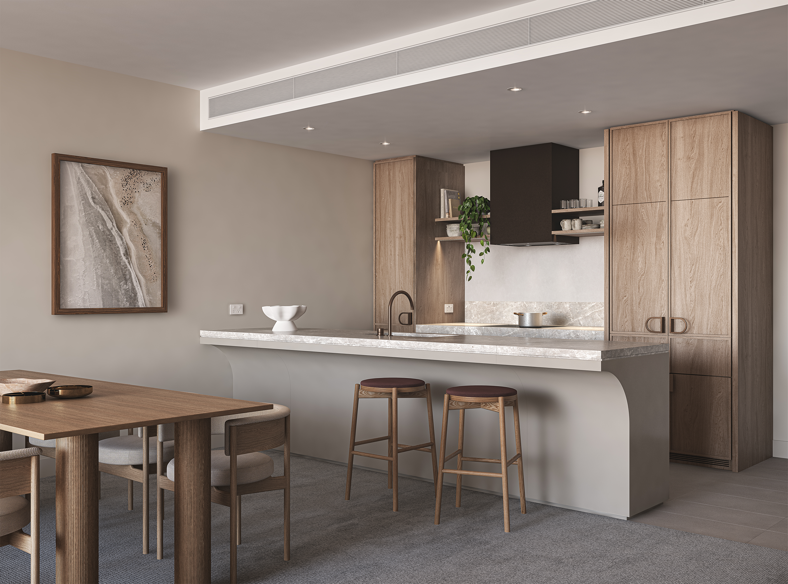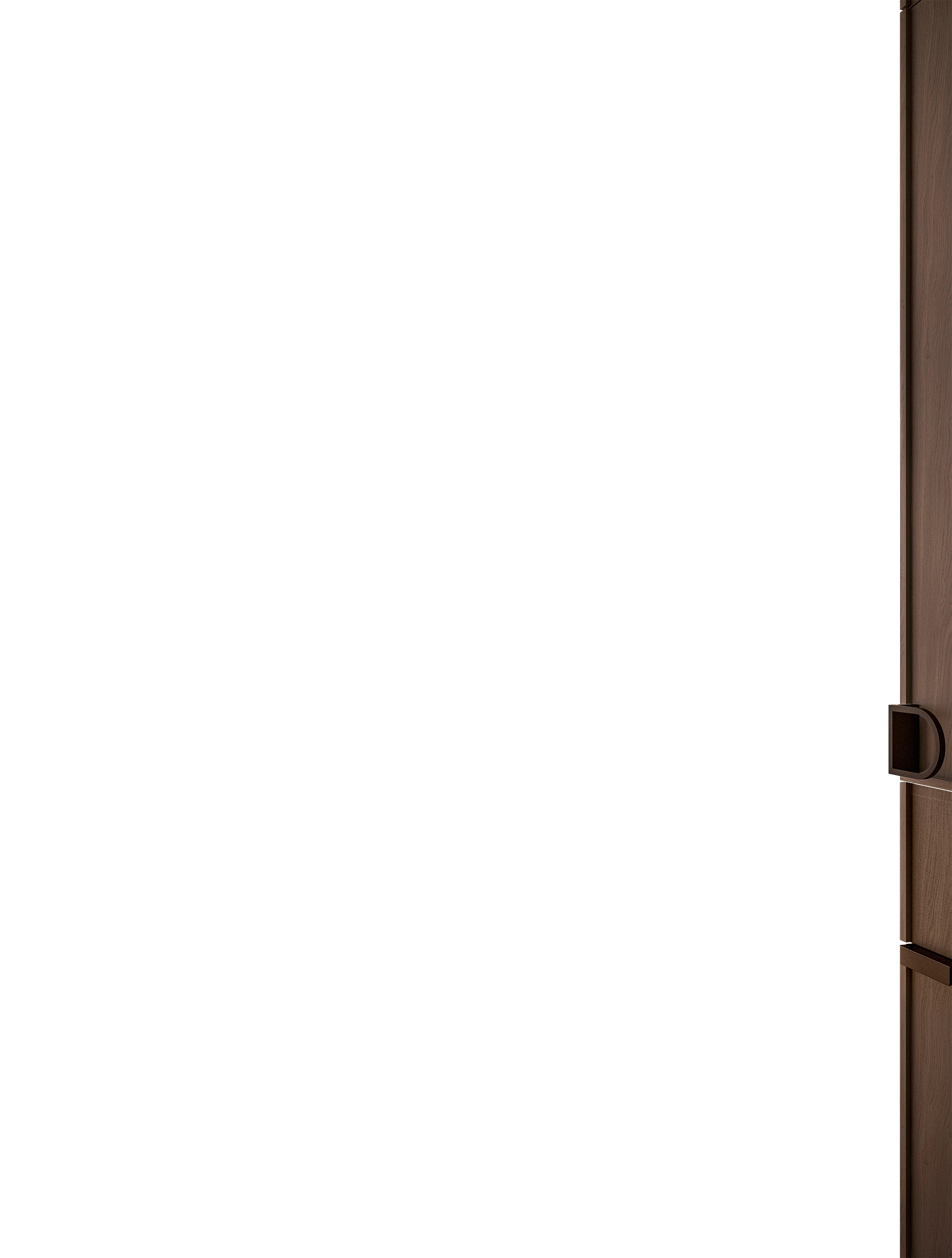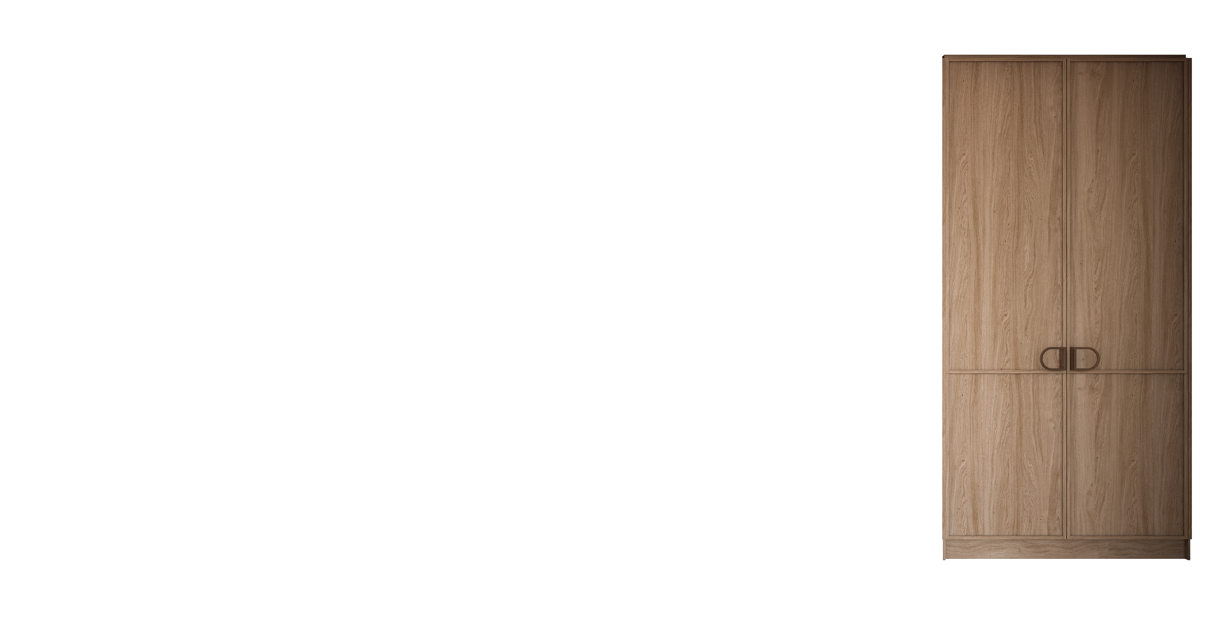 Cupboard with timberlook laminate, shaker profile and custom handle and desk