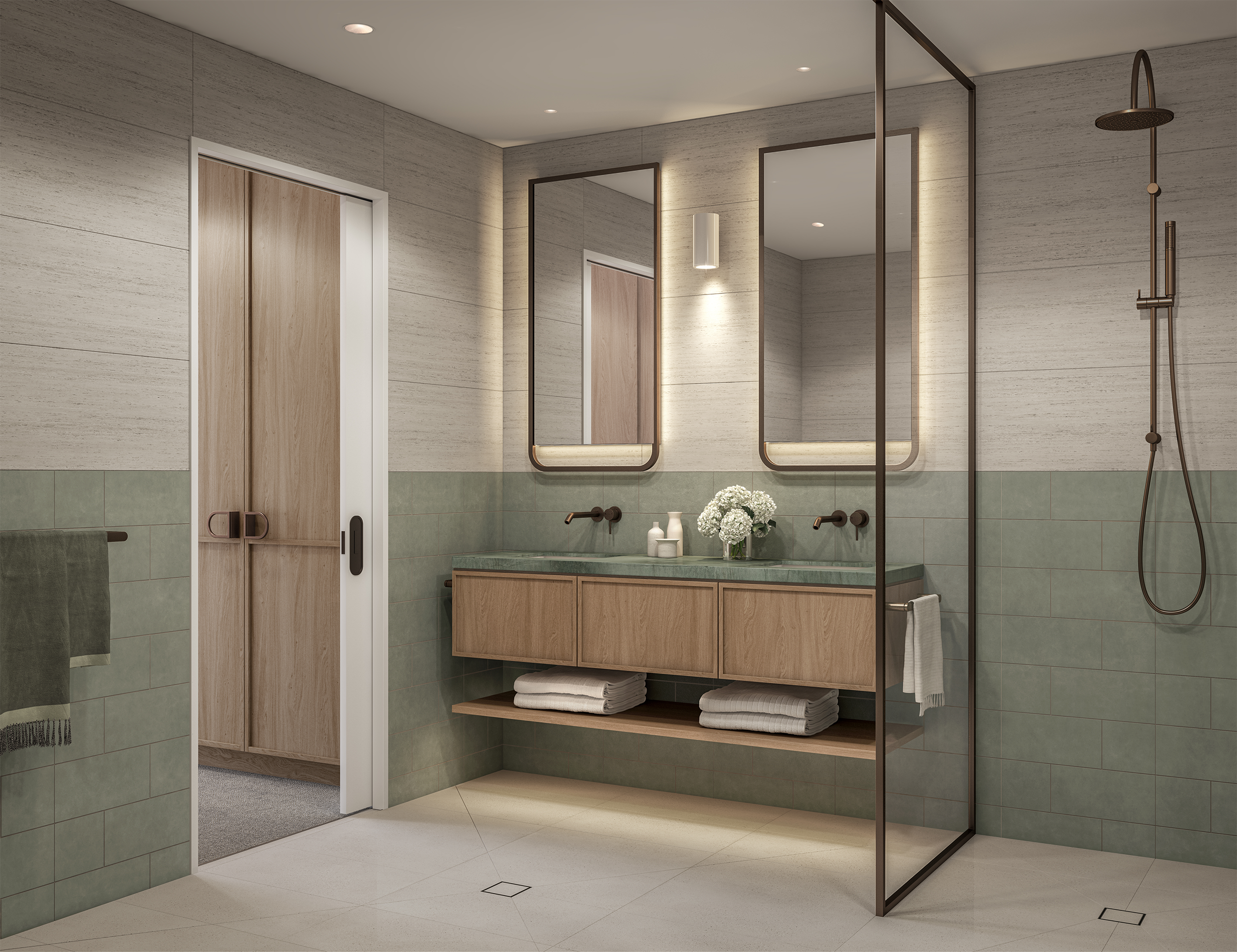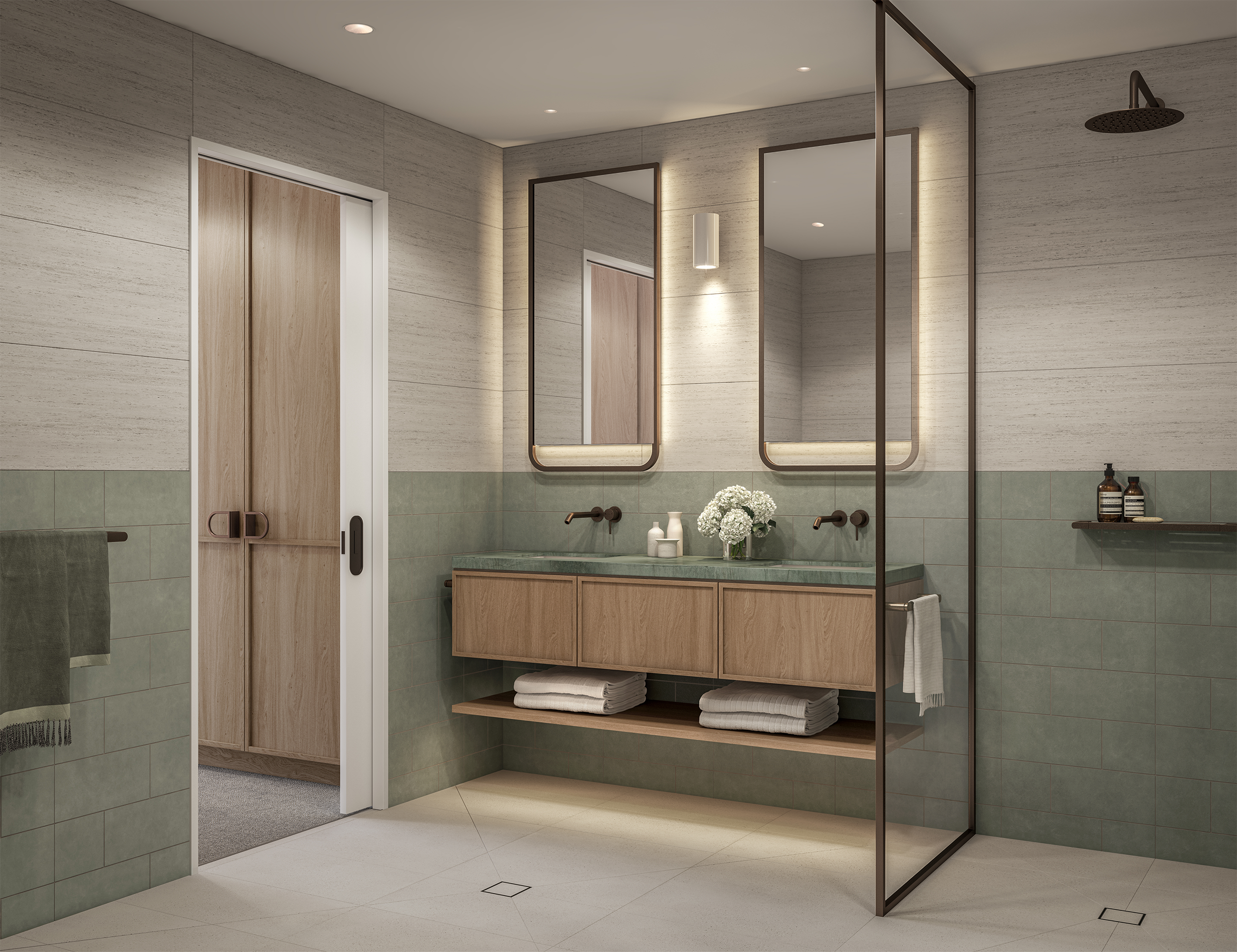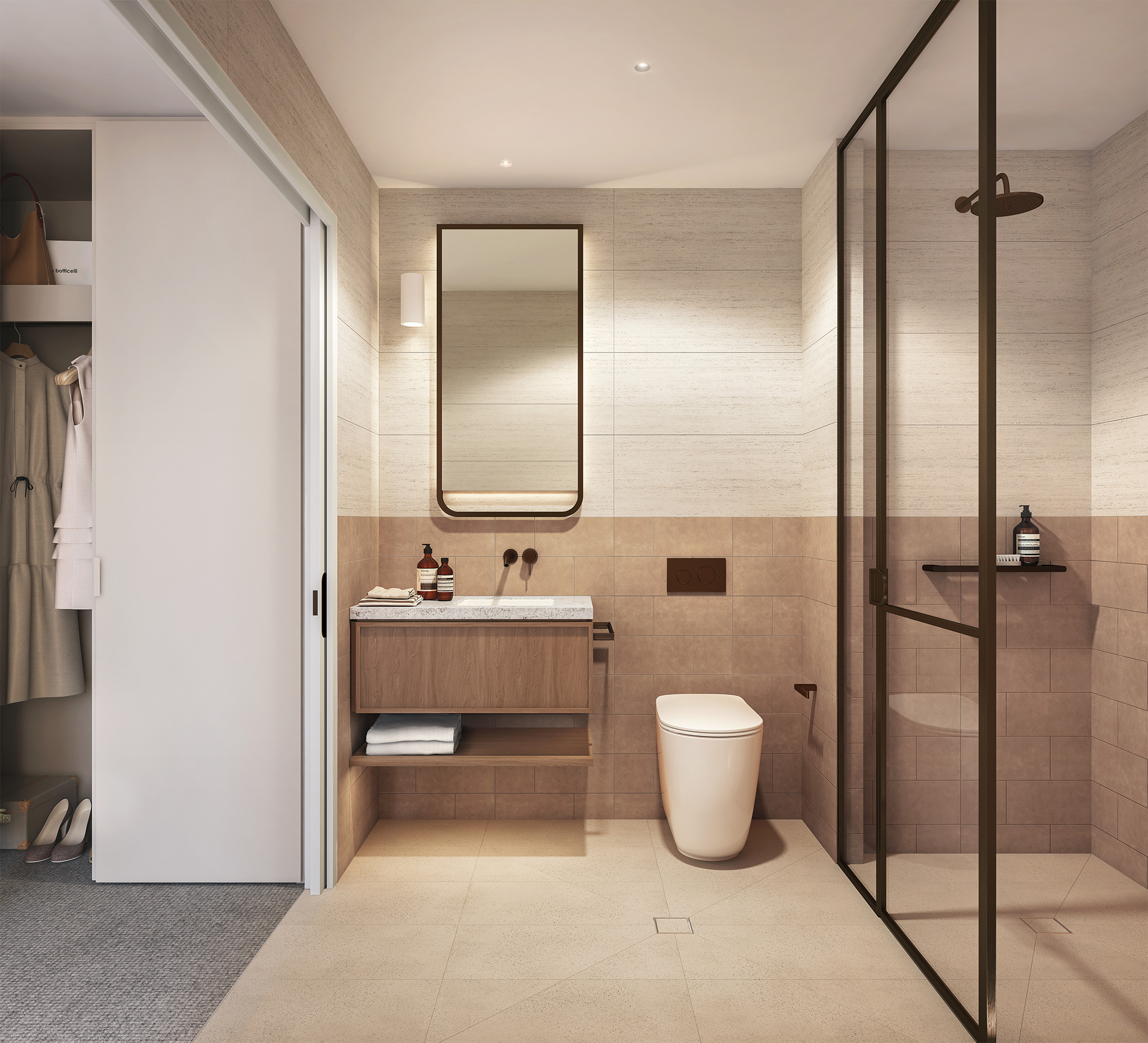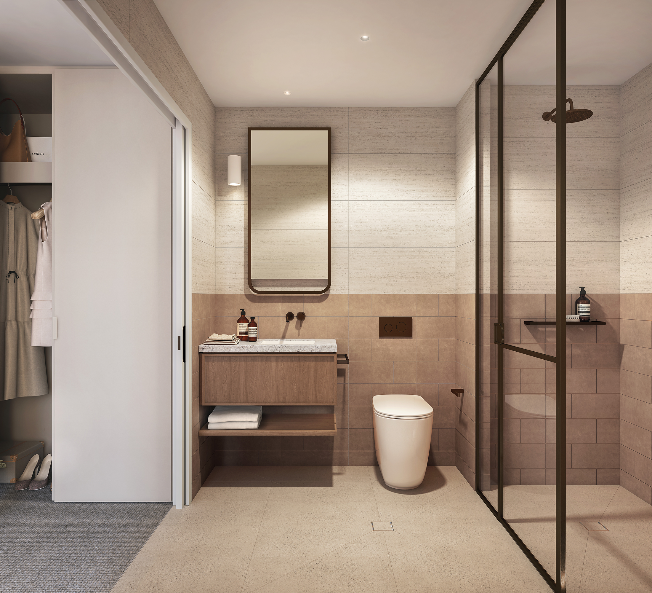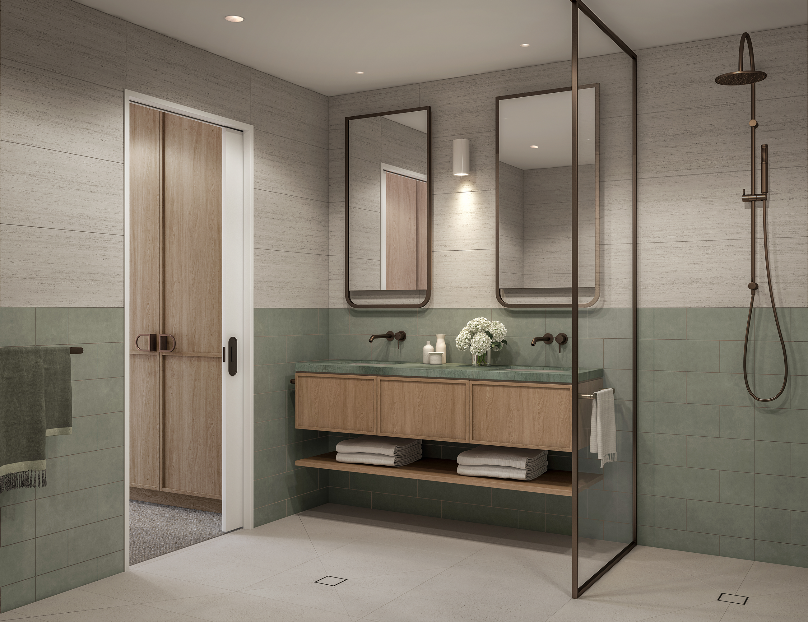 Cupboard with timberlook laminate, shaker profile and custom handle and desk