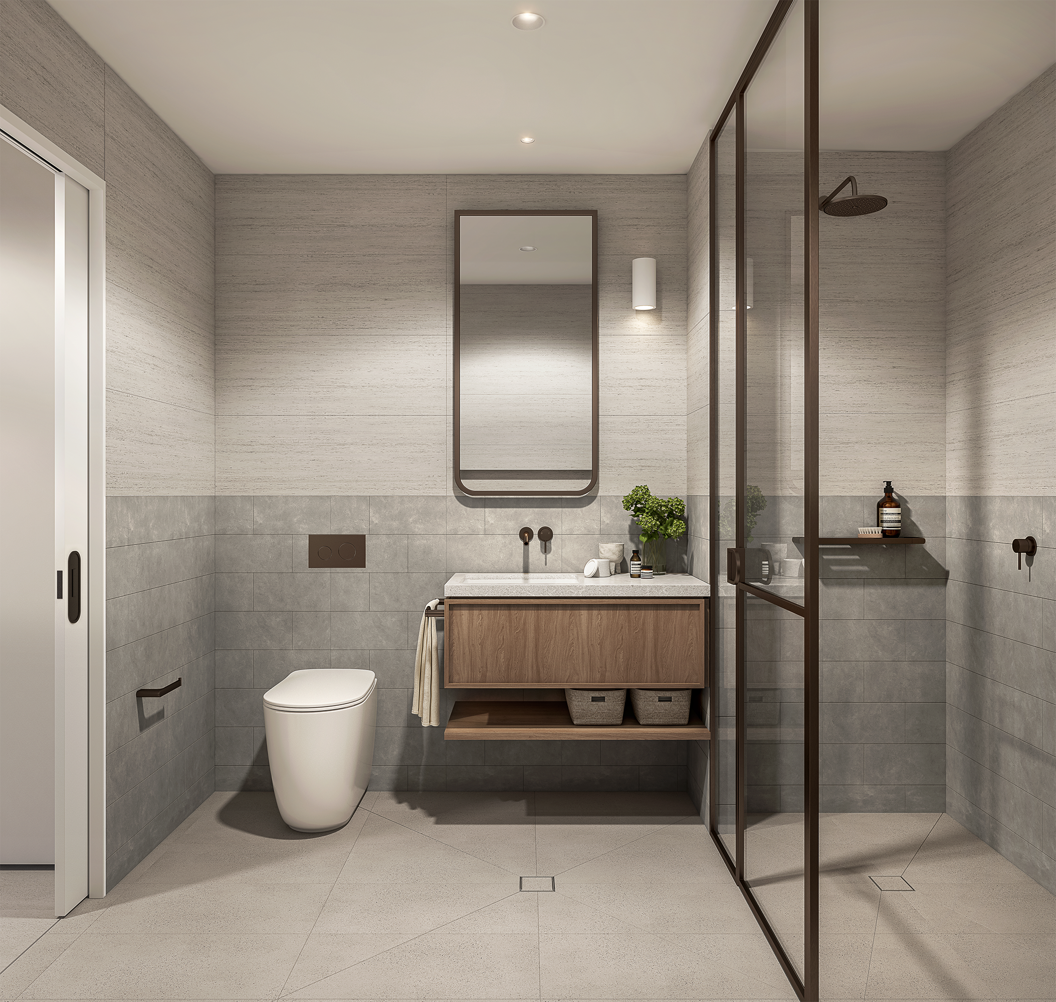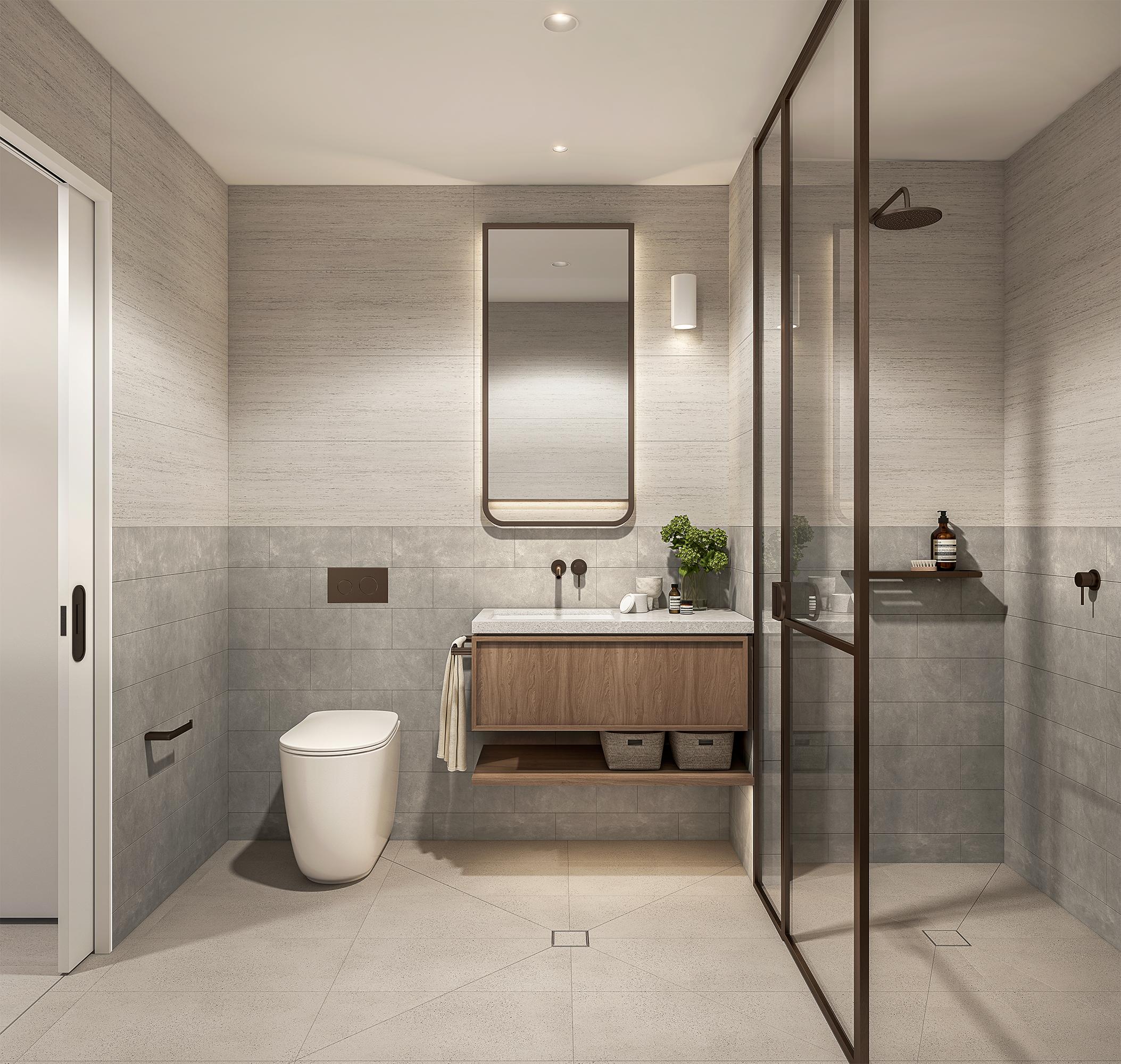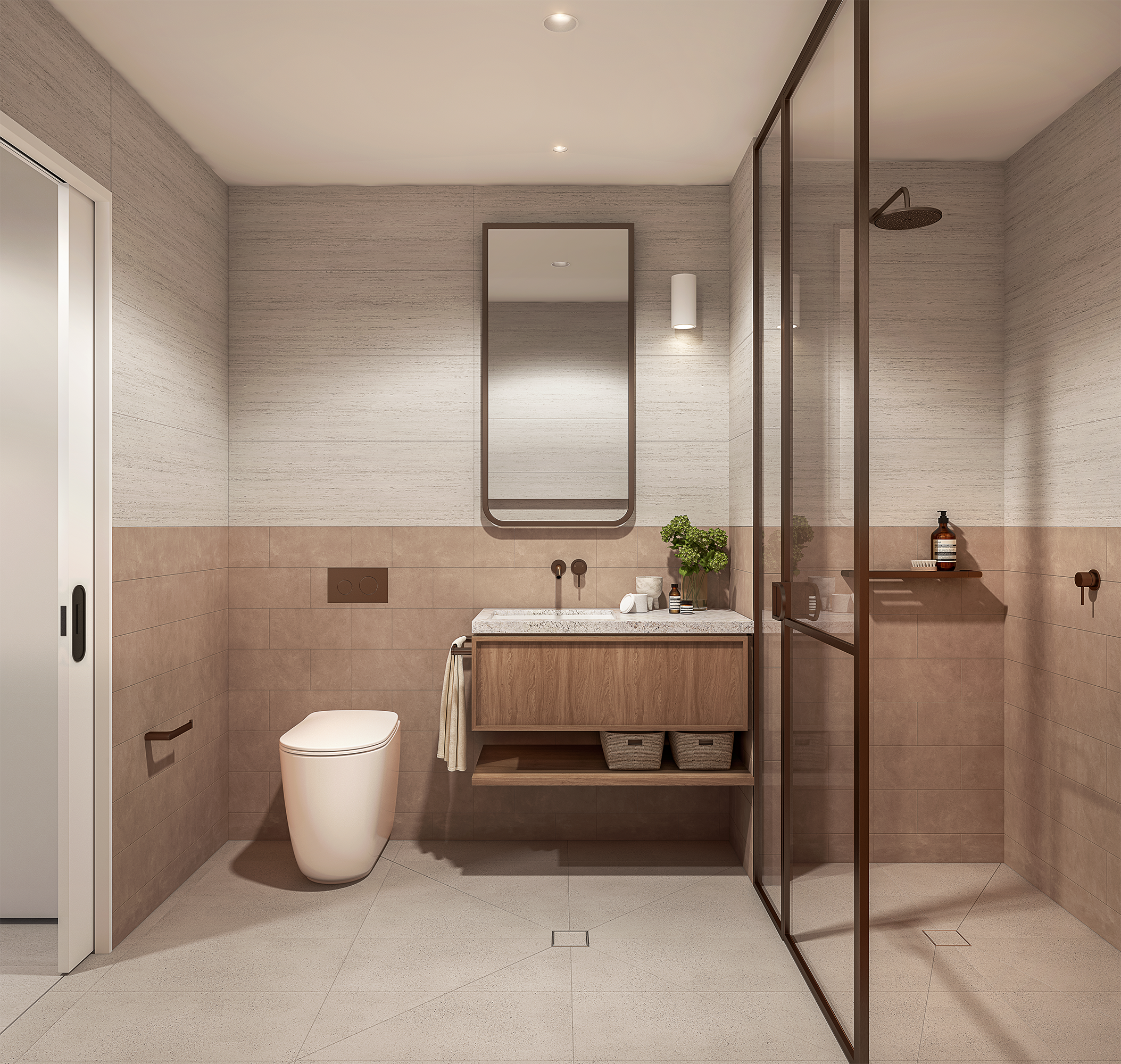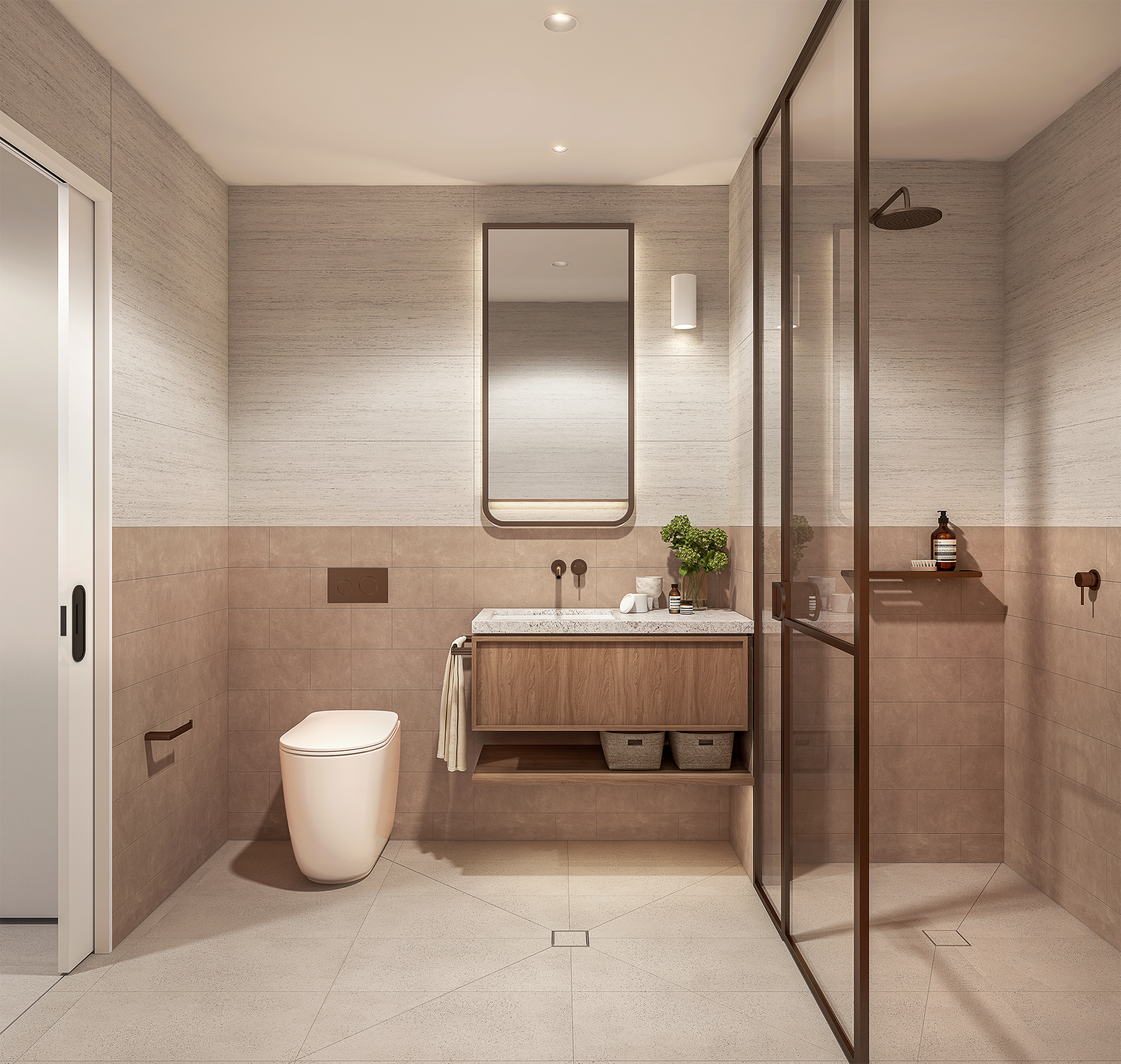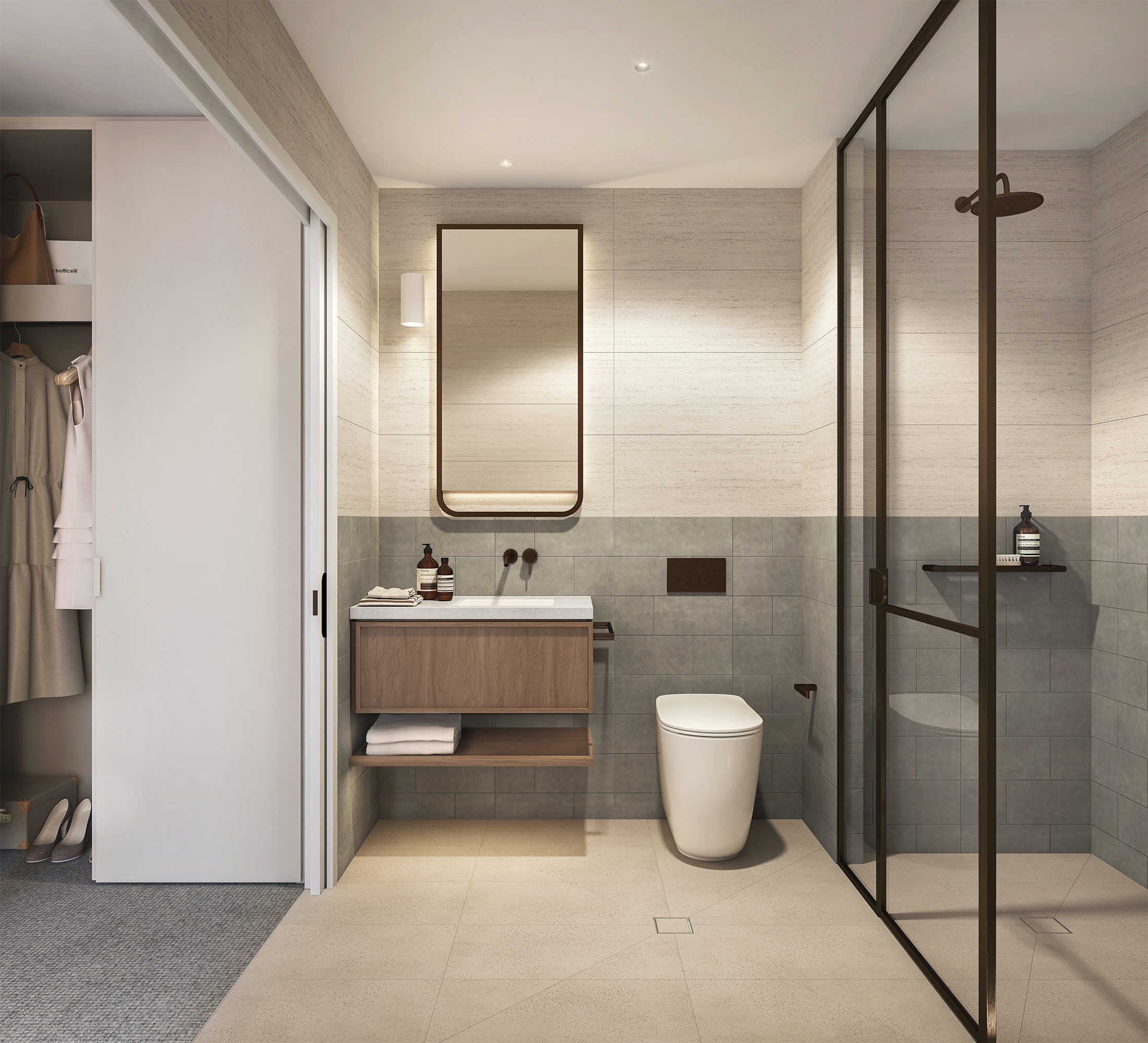 Cupboard with timberlook laminate, shaker profile and custom handle and desk