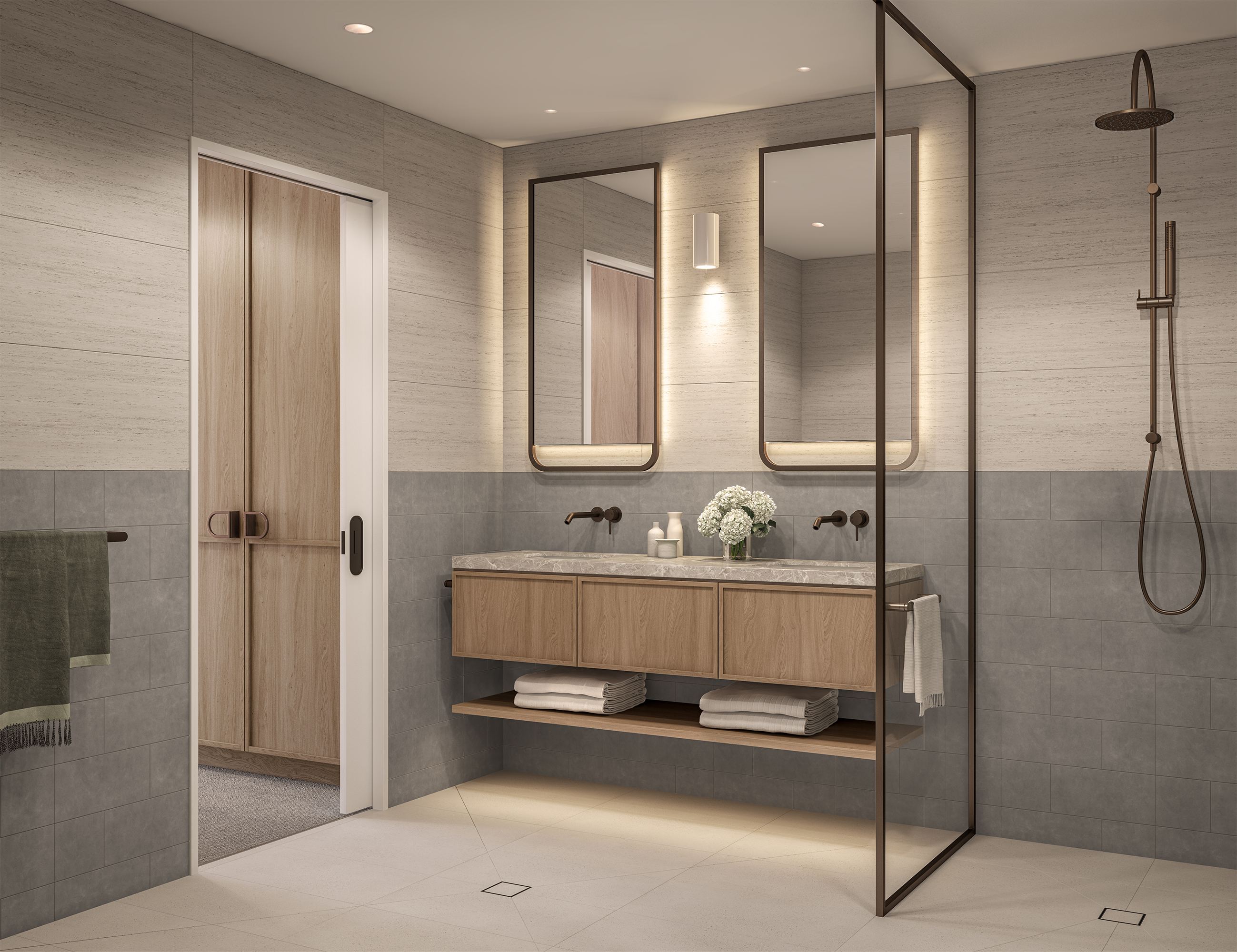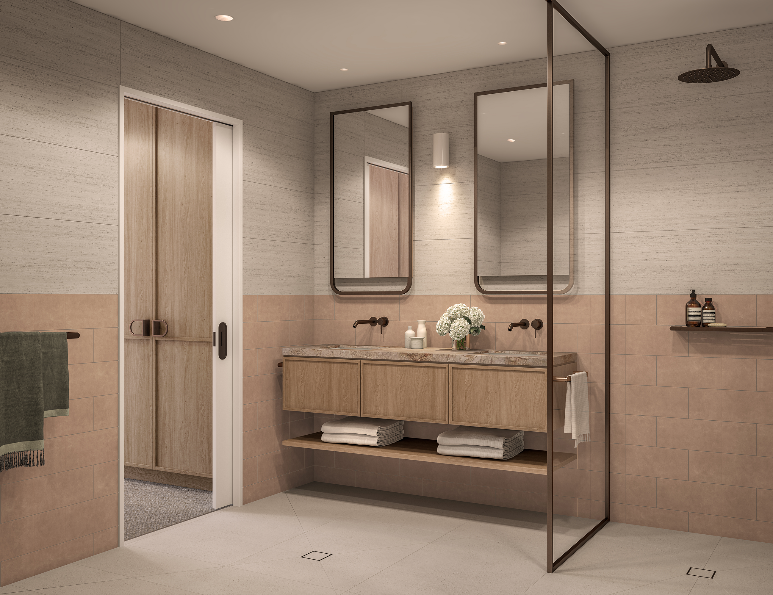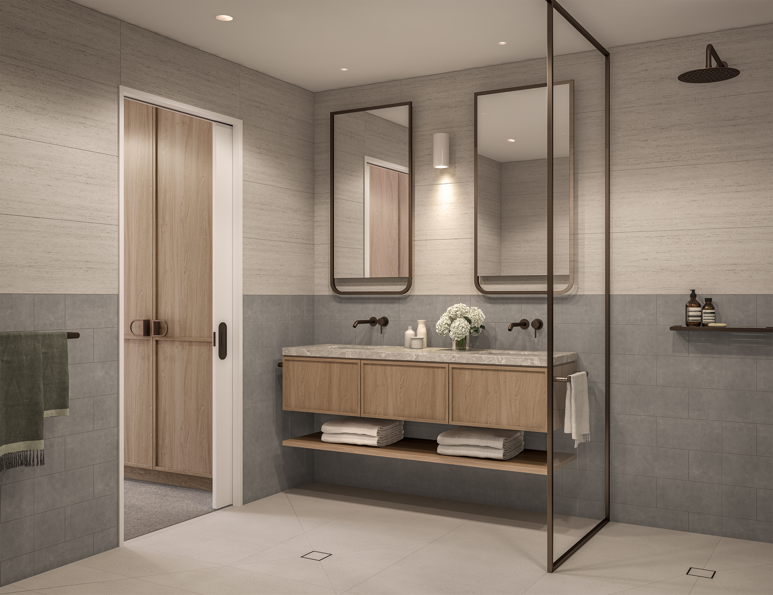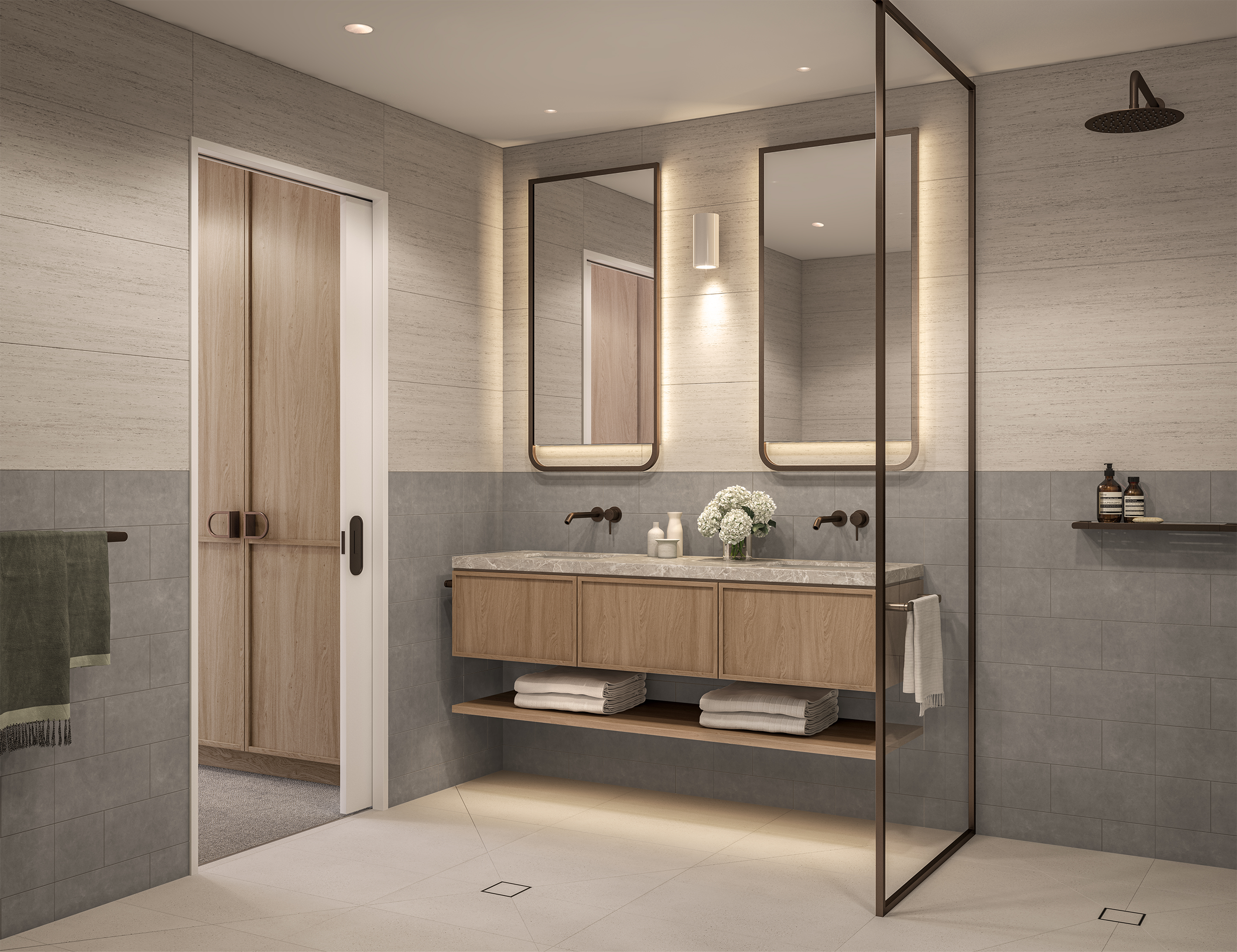 Two cupboards with timberlook laminate, shaker profile and custom handle and desk