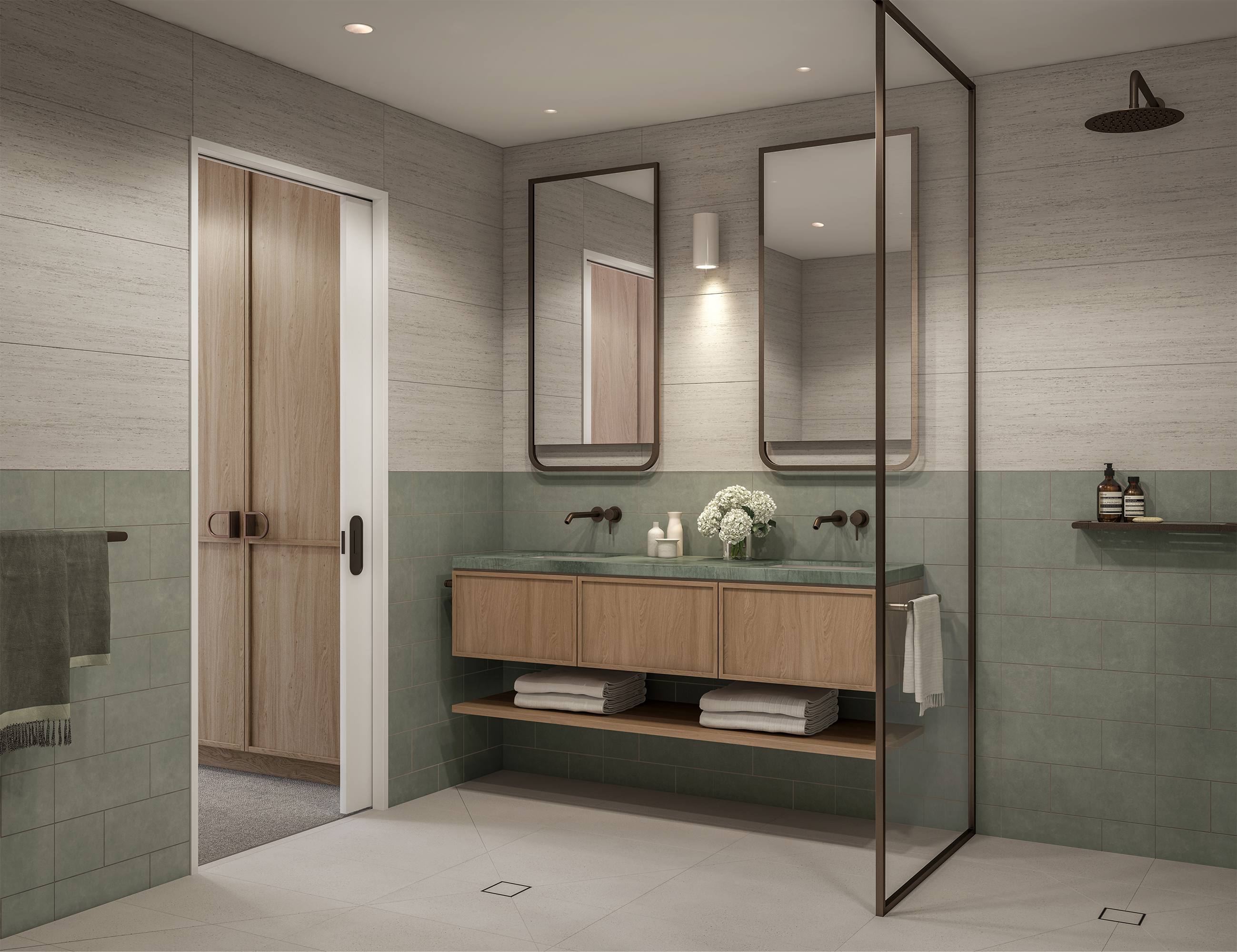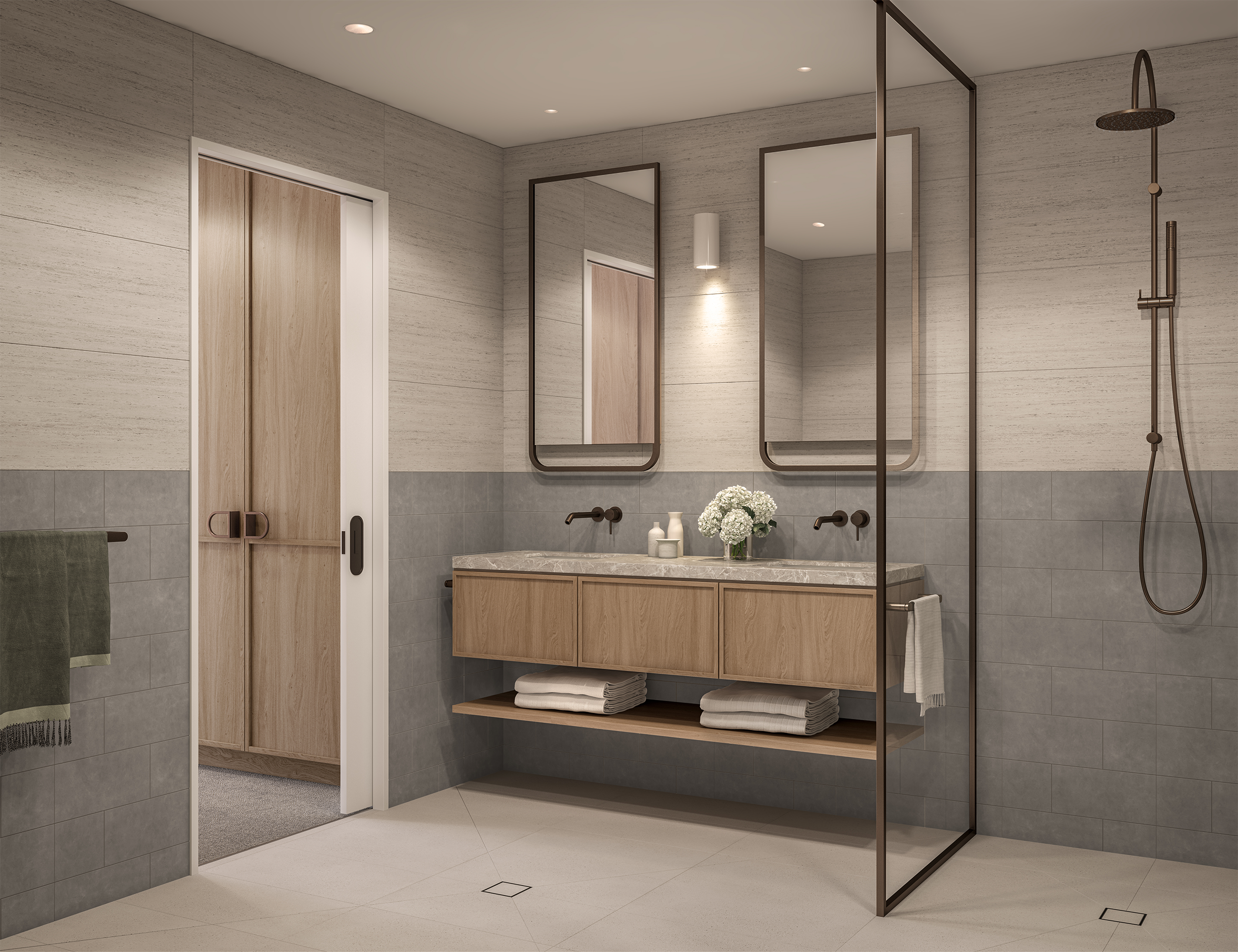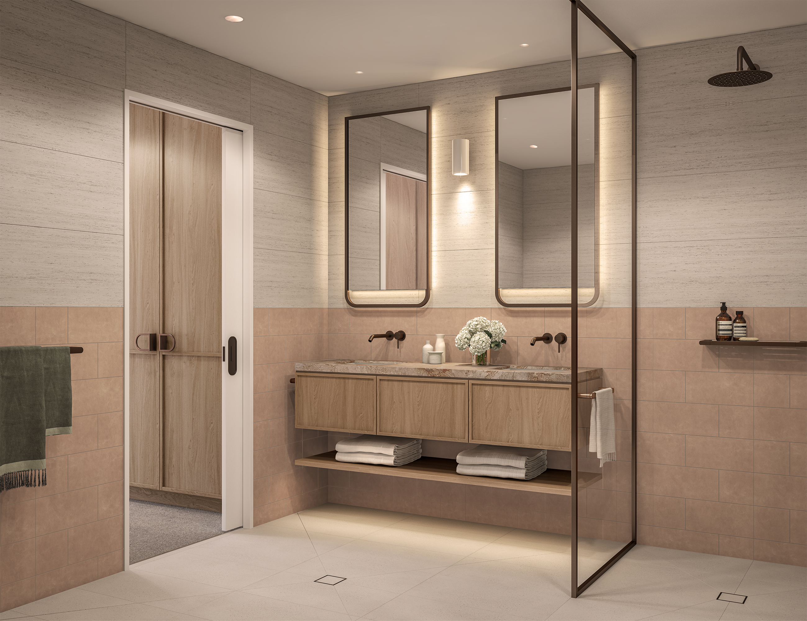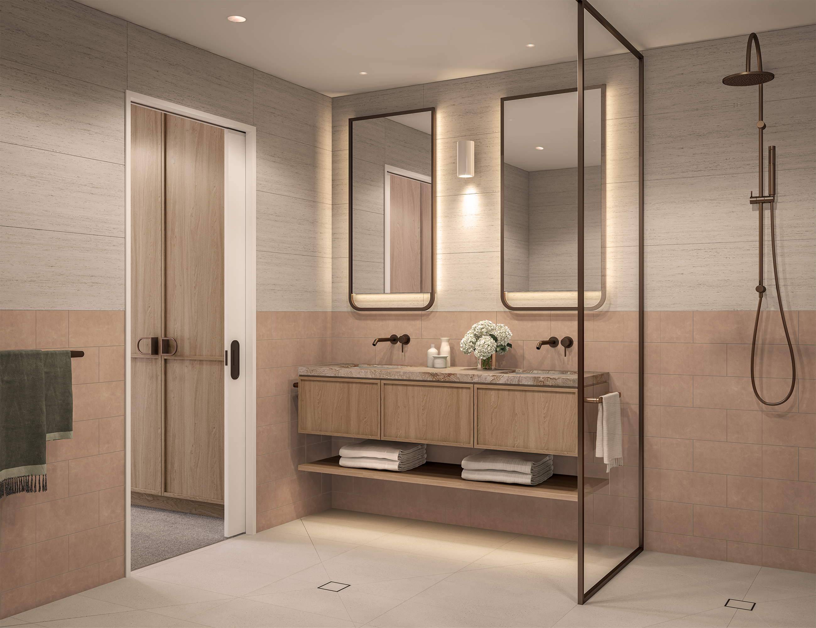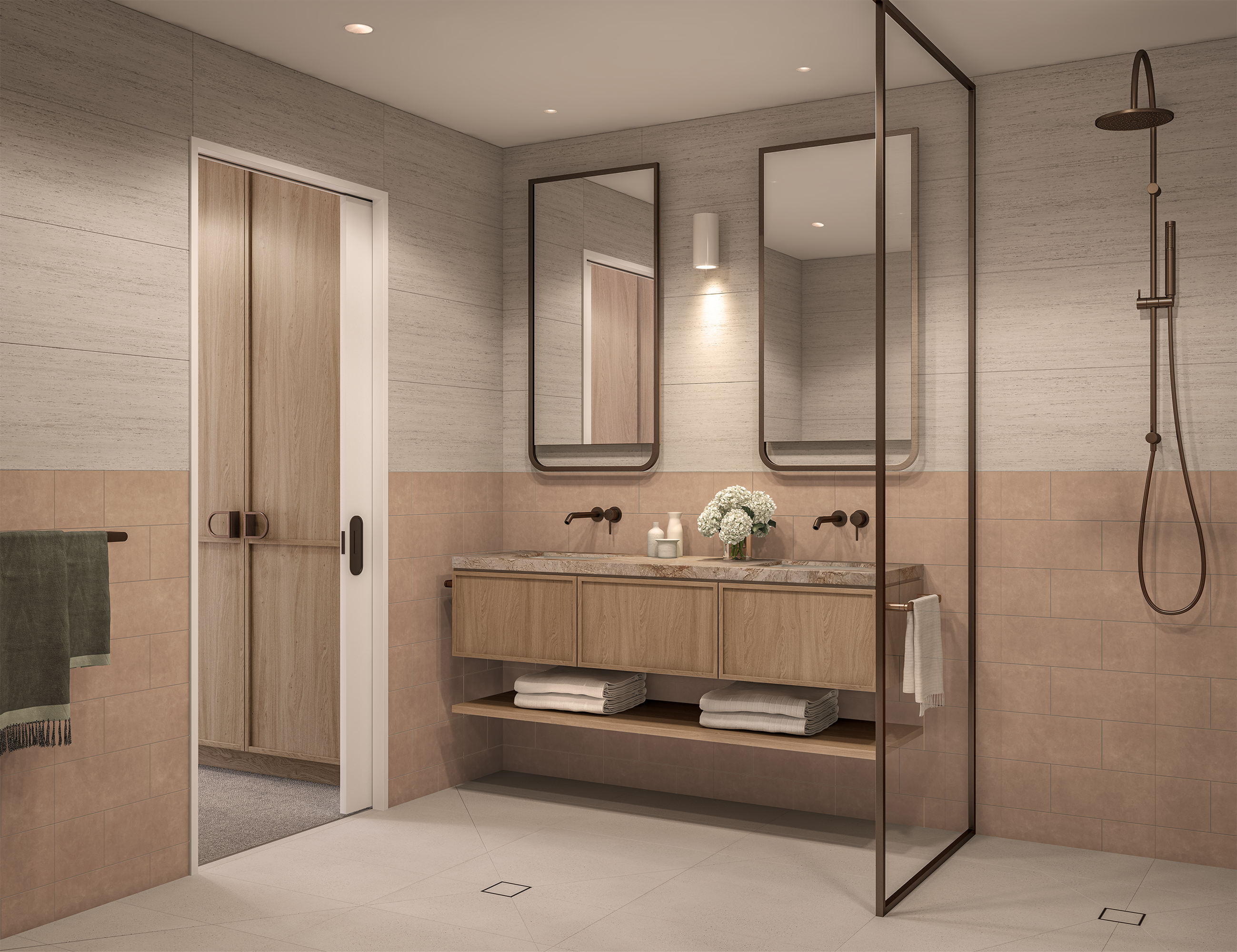 Two cupboards with timberlook laminate, shaker profile and custom handle and desk